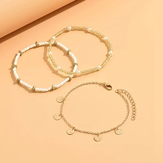 Coastal Charm 3-Piece Layered Anklet Set | Gold